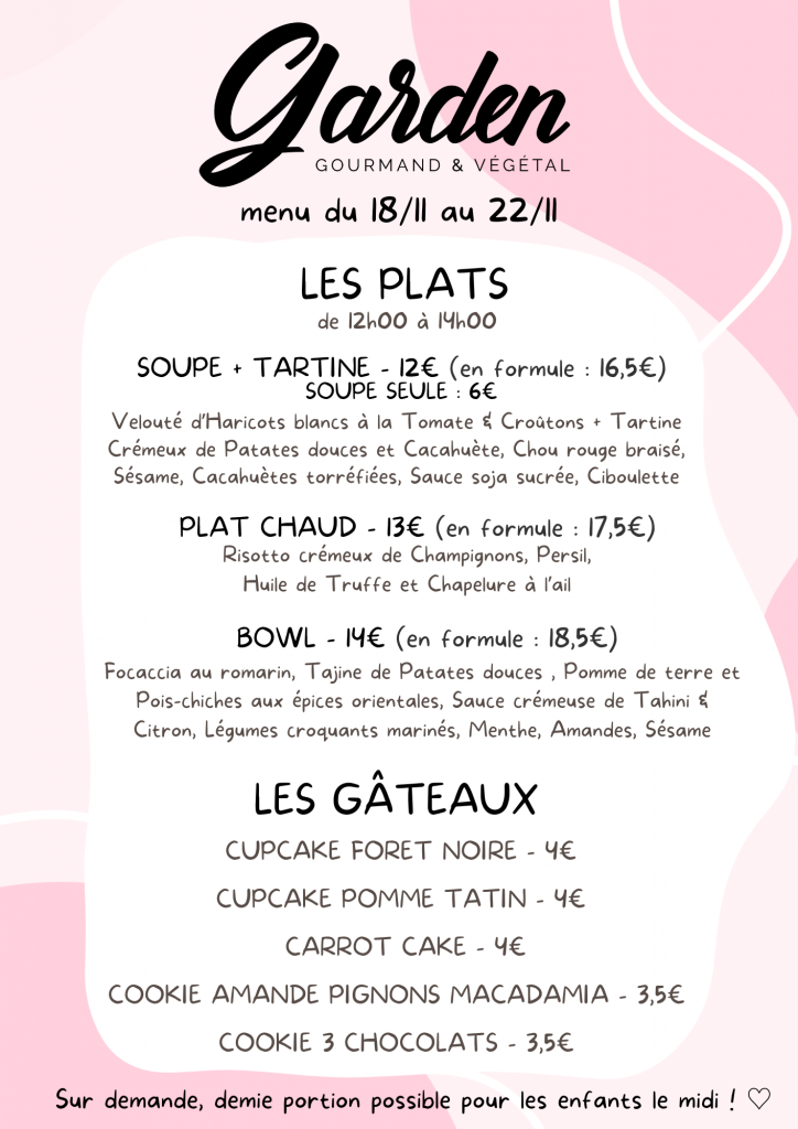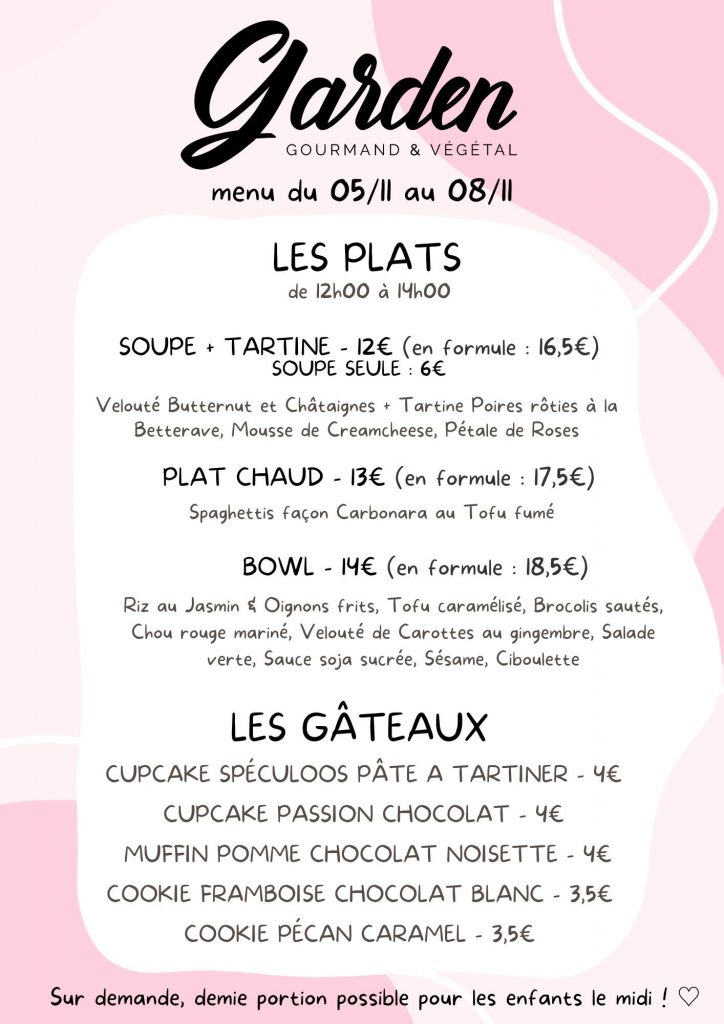 La carte salée change deux fois par mois afin de vous proposer des plats élaborés avec des légumes locaux et de saison. La carte sucrée change chaque semaine, pour toujours plus de gourmandise !